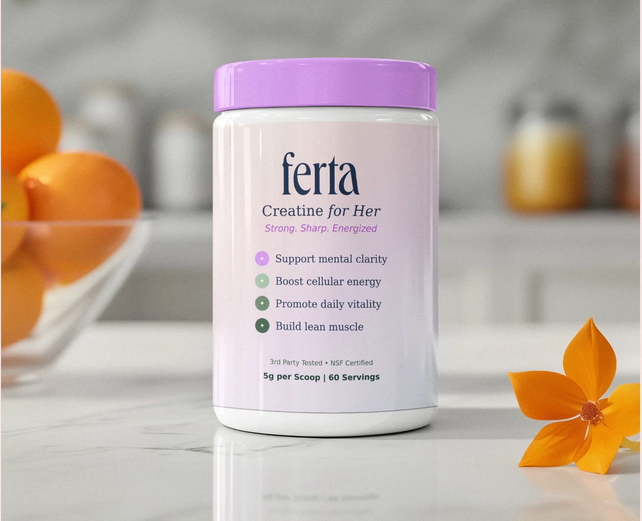 We built Ferta Creatine for women like her, mothers, women trying to conceive, women who refuse to accept fatigue as the price of a demanding life. Micro-ionized, pharmaceutical-grade, third-party tested, no fillers.