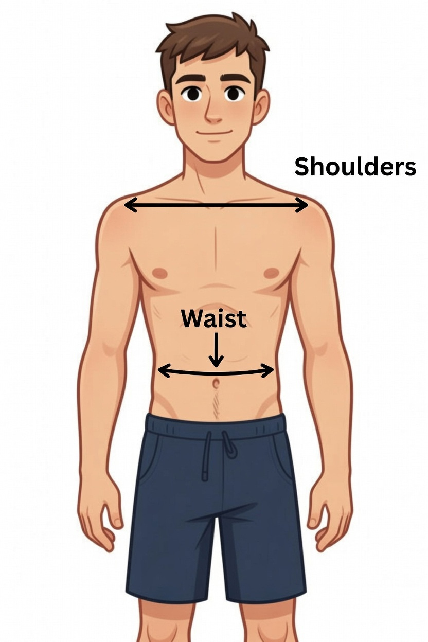 Your shoulders (measured around the medial deltoid and across the nipple line) should be roughly 1.618 times your waist measurement. In practical terms, that’s about a 20-inch difference between your shoulders and your waist.